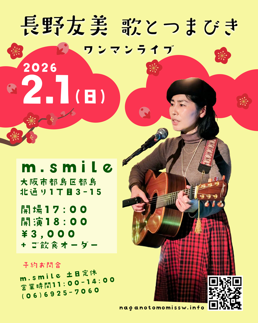 ・6/28(土)大阪市 m.smile 長野友美ワンマンライブ「歌とつまびき」