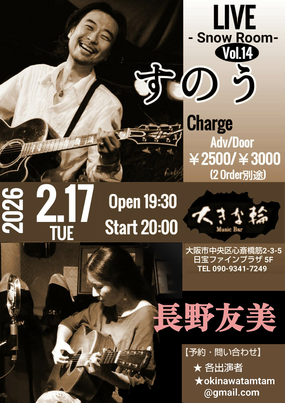 ・12/21(日)大阪市 ムジカジャポニカ 「ムジカで師走のお見合い」長野友美と舟、大間知潤(バンド)